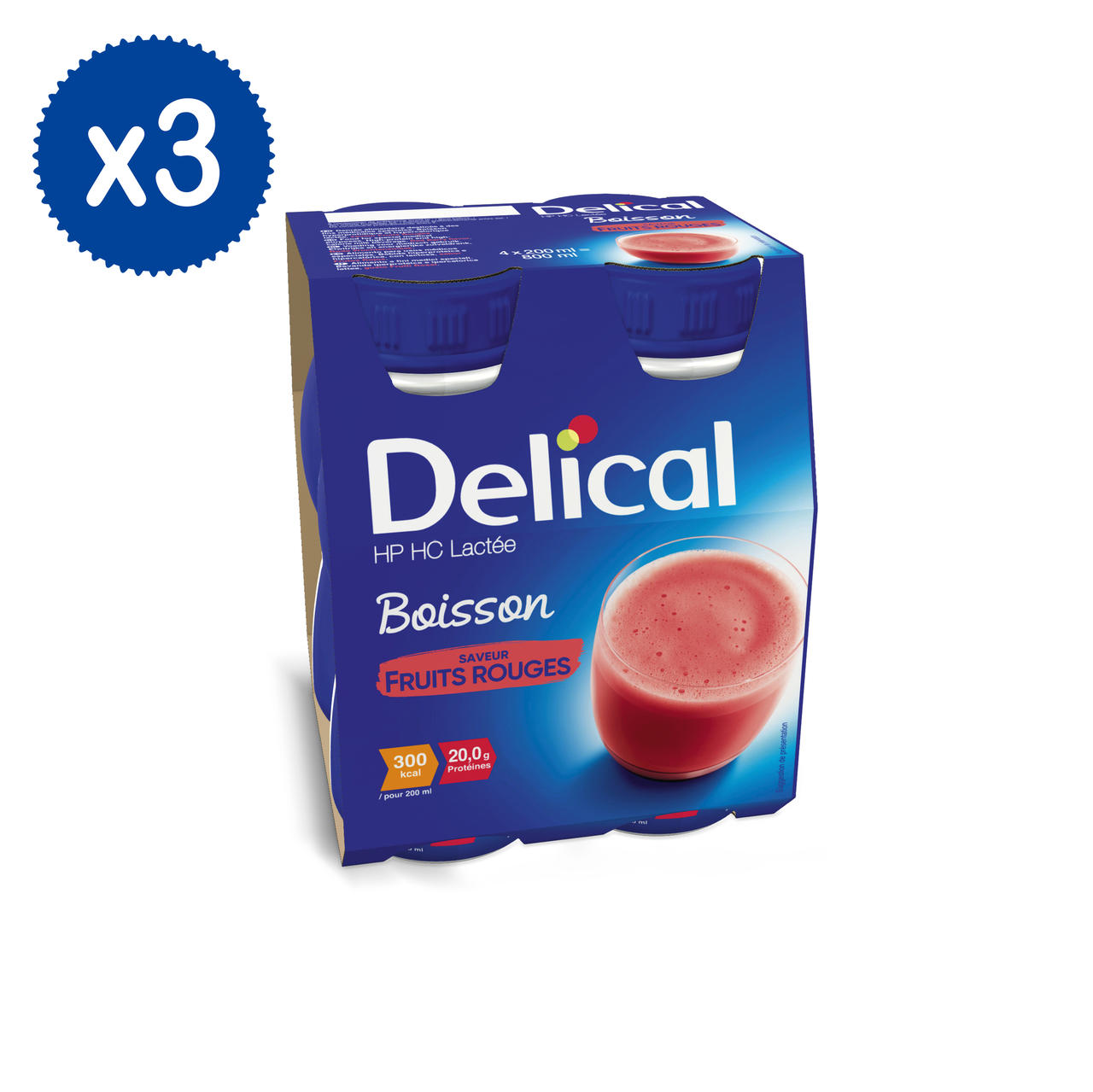 Bevanda al gusto Frutti Rossi a base di latte, pronta all’uso, ipercalorica, iperproteica, senza fibre e senza glutine.